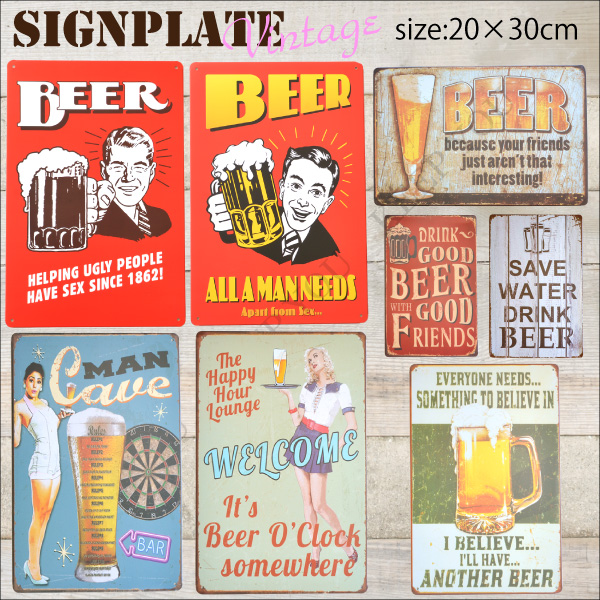 【メール便対応】アメリカン ブリキ看板 ワイン ビール カクテル 20×30cm ビンテージ メタルサインプレート【ブリキ看板 サインプレート アメリカン雑貨 カフェ バー ガレージ お部屋のインテリア】119〜120/149〜154 ┃
