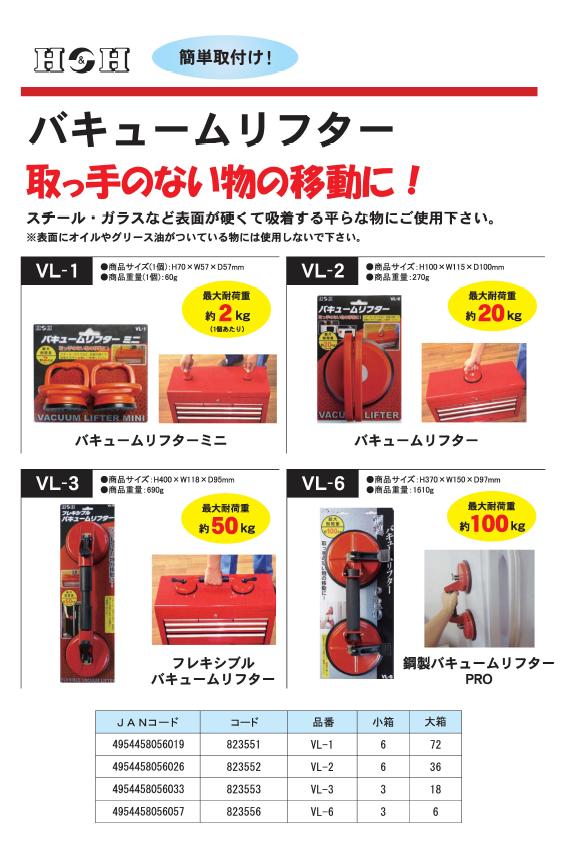 (業務用5セット)H&H 鋼製バキュームリフター/運搬・荷役工具 〔最大耐荷重:約100kg〕 VL-6 〔業務用/家庭用/DIY/日曜大工〕 【北海道・沖縄・離島配送不可】