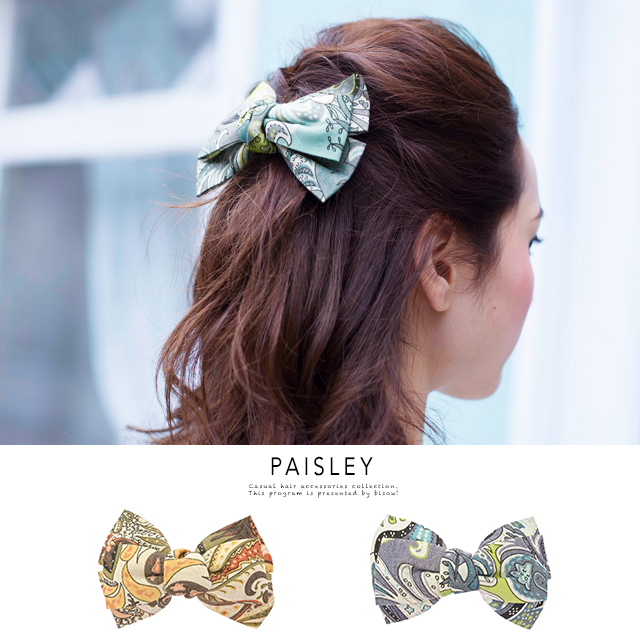【トレンド柄のリボン型バレッタ】バンダナ柄/ペイズリー柄/大人/リゾート/カジュアル/ヘアアレンジ/髪留め/髪飾り/ヘアアクセサリー