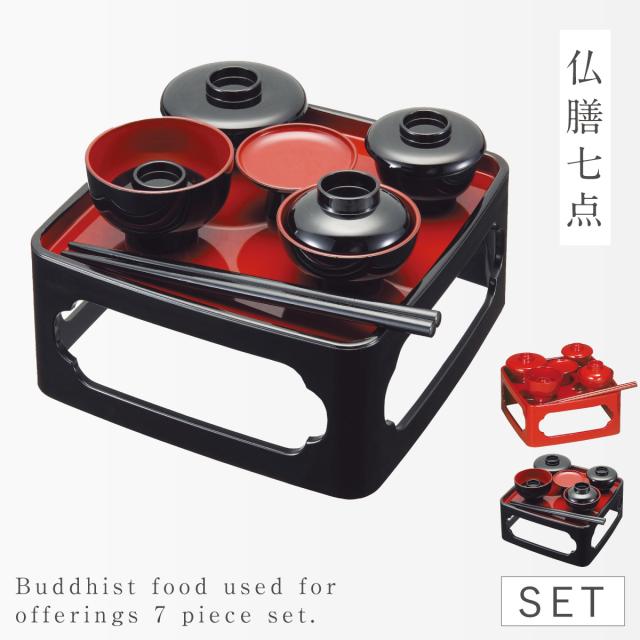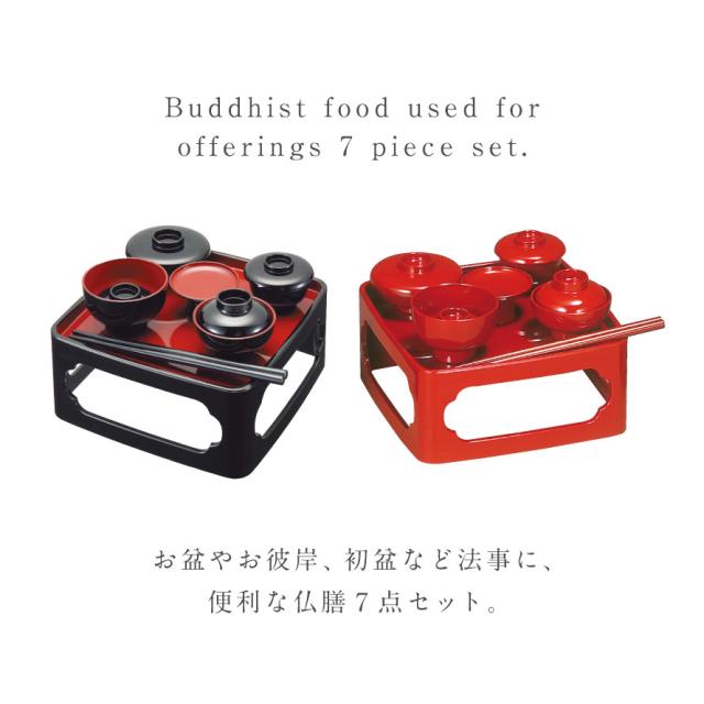 仏膳 セット,お供え お膳 セット,仏具 お膳セット,仏壇 お供え 食器,仏膳セット,お膳セット,仏膳,お膳,料理,お供え,御供え,ご飯,ごはん,仏飯,器,食器,御霊供膳,霊供膳,仏具,仏具用品,仏壇,仏壇用,精進料理,膳,箸,飯椀,平椀,高月,汁椀,ツボ椀,7点セット,セット,黒内朱,総朱,日本製,国産,命日,初七日,四十九日,月命日,お彼岸,お盆,法要,上品,シック,上質,モダン,