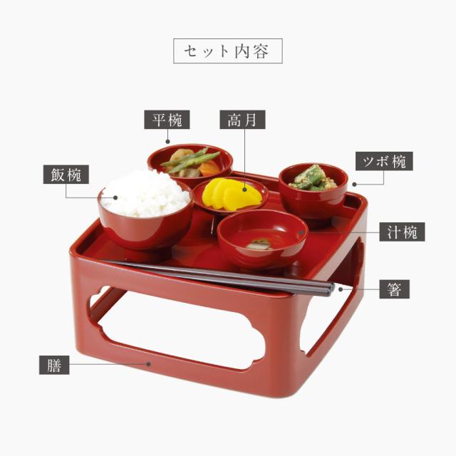 ■セット内容:膳、箸、飯椀、平椀、高月、汁椀、ツボ椀