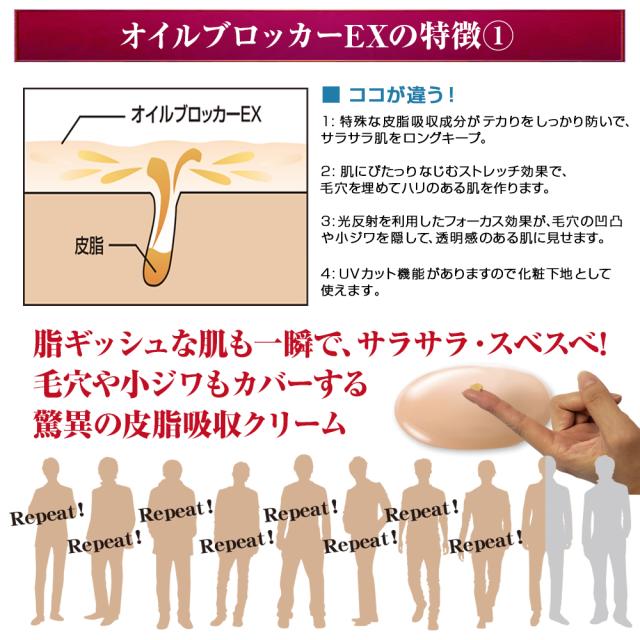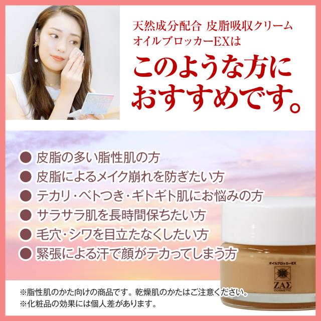 皮脂吸収クリーム オイルブロッカーEX 2個セット ひと塗りで皮脂・汗を吸着 脂浮きを長時間抑えテカリのない肌に 脂性肌の化粧下地に最適 毛穴をカバーし光反射効果で美肌を演出 ザスコスメティック