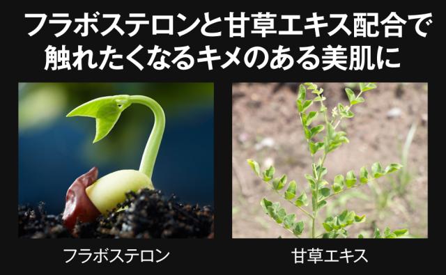 フラボステロンと甘草エキスを配合。キメの細かい健康的な素肌へと導きます。