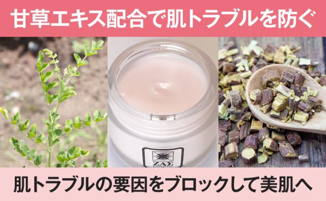 抗炎症作用や抗アレルギー作用のある「甘草エキス」配合で、肌トラブルの要因をブロックしながら、肌本来のハリを維持し、しっとり潤いのある美肌に整えます。