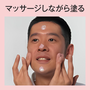 顔の中心から外側に向かって円を描くように、力を入れずマッサージします。クリームが肌によく浸透すればOKです。