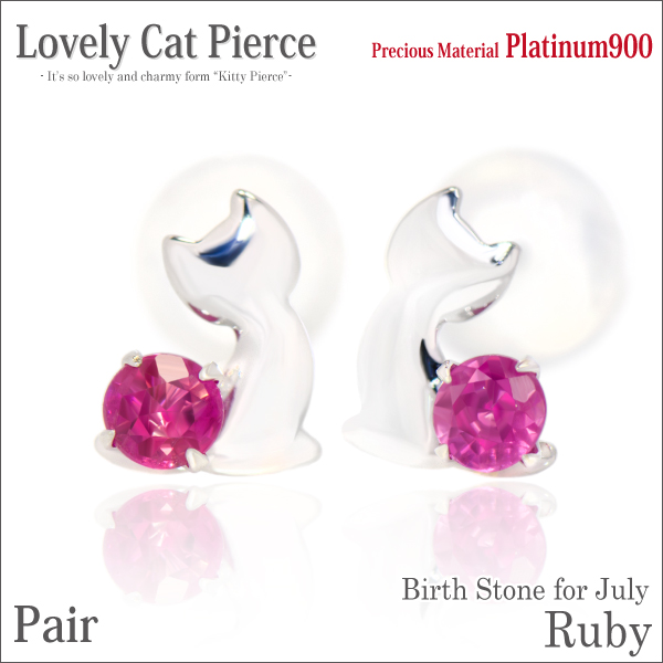 ルビー ピアス 送料無料 Pt900プラチナ ラブリーキャット ネコ 子猫 2.5mm 両耳ペア ダブルロックキャッチ付