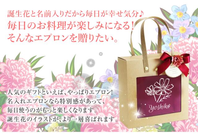 エプロン レディース ギフト シンプル 保育士 お母さん おばあちゃんバースフラワー 翌々営業日出荷 花 誕生花 女性 名入れ ギフト