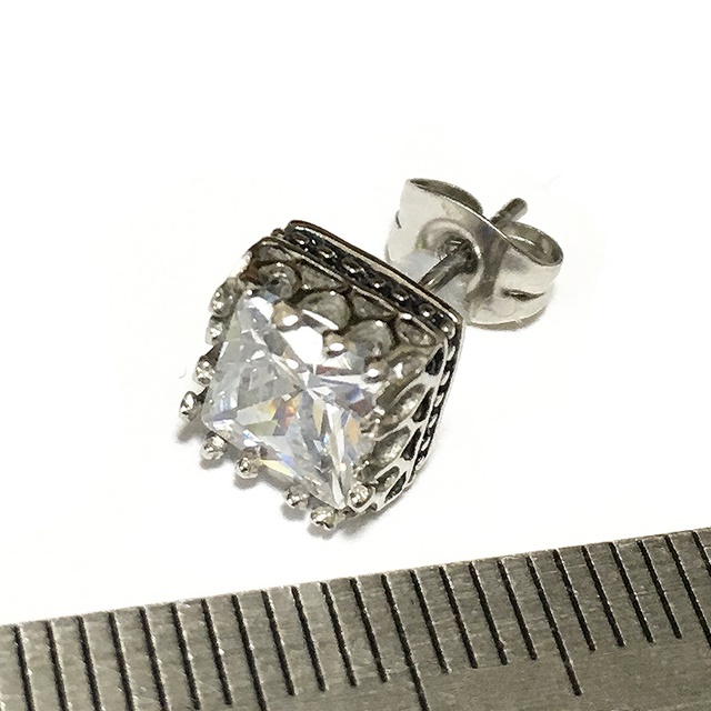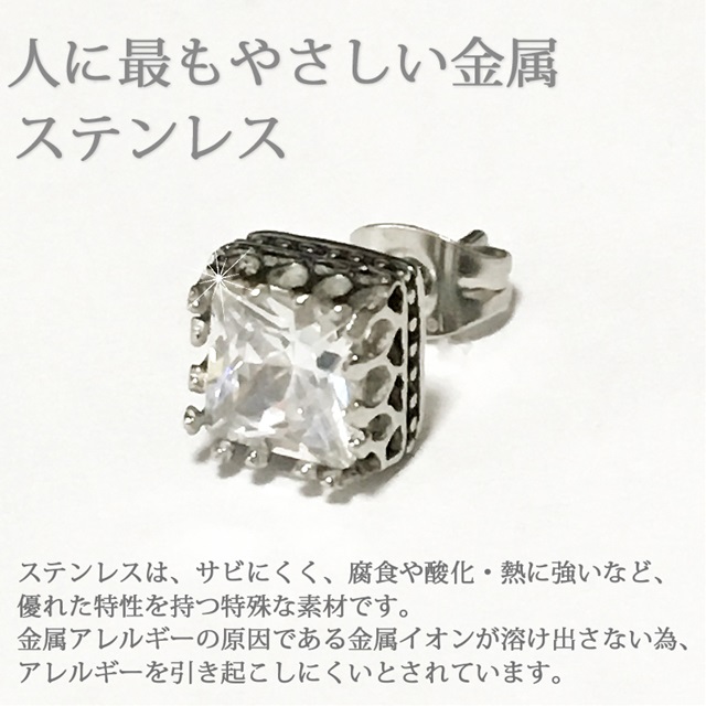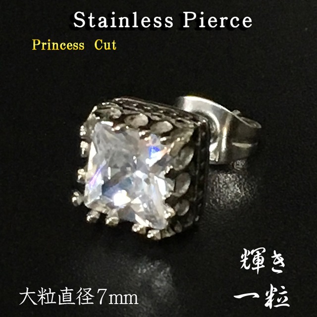 キュービックジルコニア ダイヤモンド 1粒ピアス 【片耳:1個】ピアス 送料無料 プリンセスカット大粒 7mm 高品質 CZ ノンアレルギーサージカルステンレス アレルギー対応