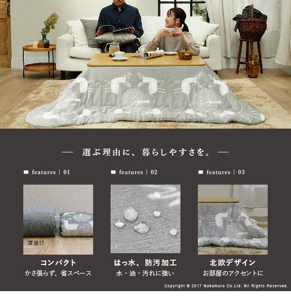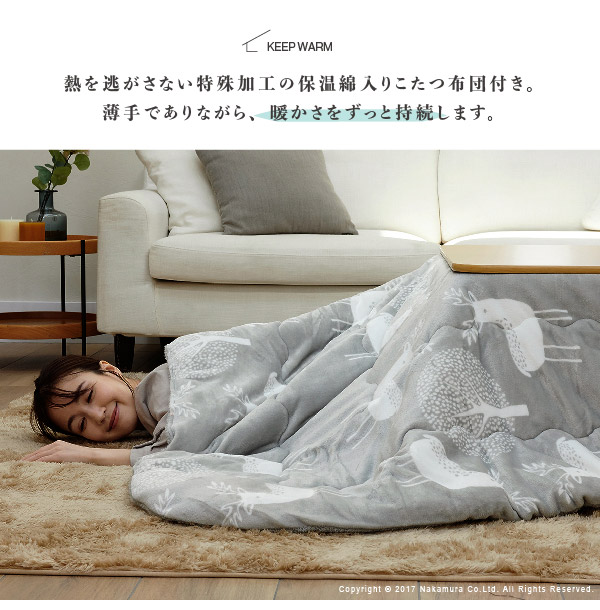 こたつ布団 北欧 正方形 保温綿入りこたつ布団 北欧柄タイプ 〔ヒートキートス〕 190x190cm 防汚加工 中綿 撥水 洗える【送料無料】
