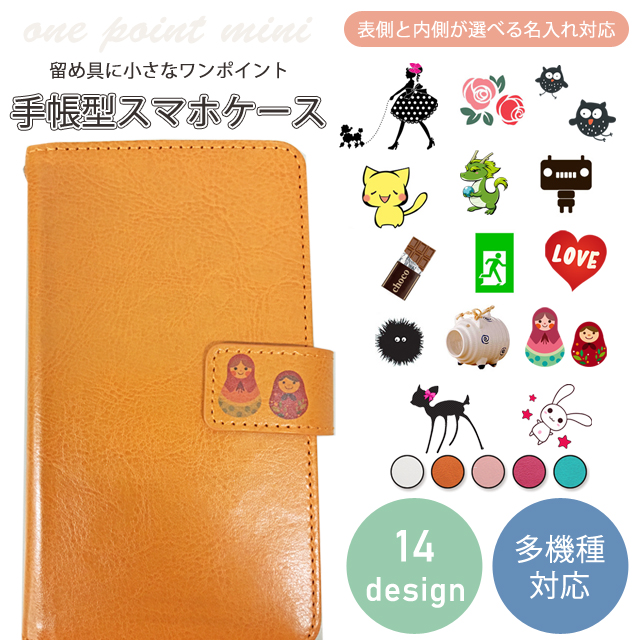 スマホケース 手帳型 留め具 ワンポイント 名入れ対応 名前入れ スマホカバー AQUOS sense9 sense8 sense7 iPhone17 iPhone16e iPhone15 Xperia 10VII 10IV Galaxy S25 A55 arrows We2 BASIO active3 Pixel10 グーグルピクセル9a 送料無料 多機種対応