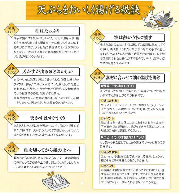 ●味・香りともに非常にまろやかで天ぷらに最適な油です。