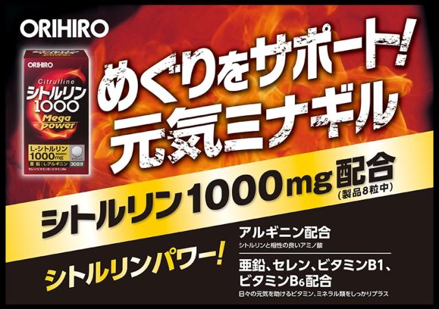 シトルリン Mega Power 1000 ORIHIRO オリヒロ メンズ サプリメント パワー エナジー 男性 活力 めぐり アルギニン 亜鉛 筋肉 マッチョ