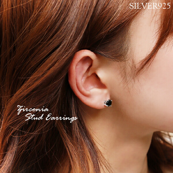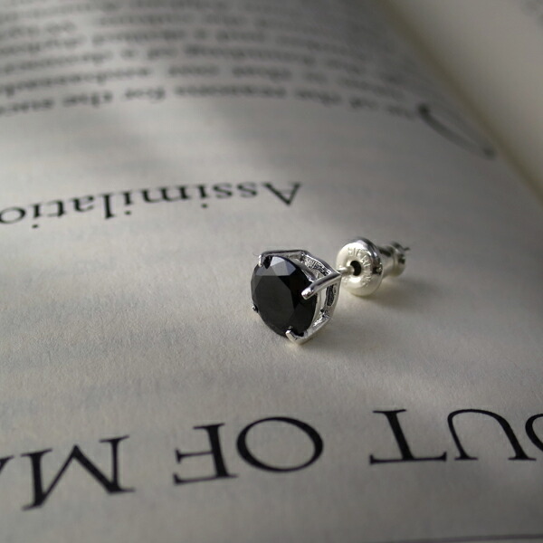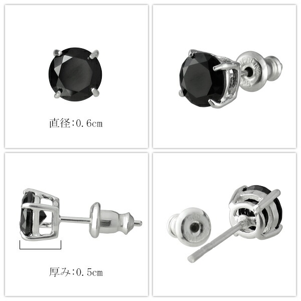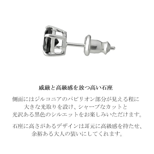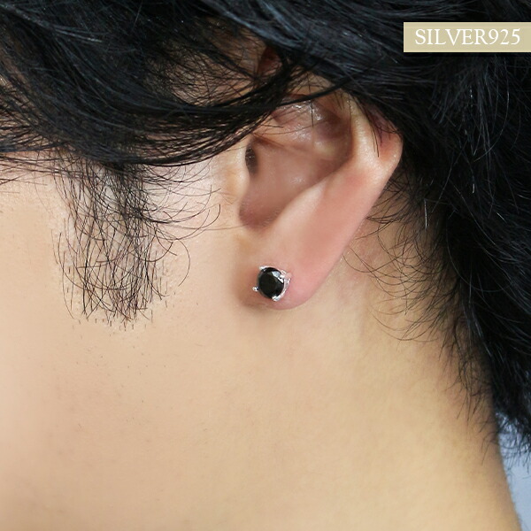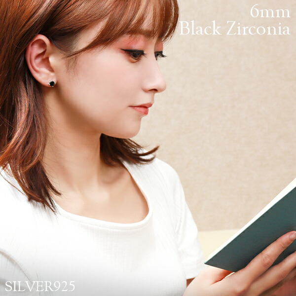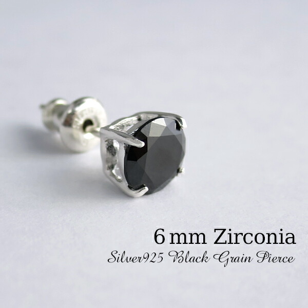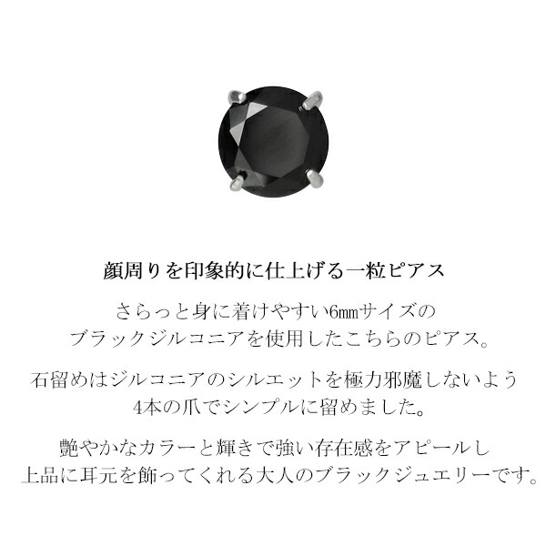 定番 6mm ブラックジルコニア 一粒 スタッドピアス 1P 片耳用 シルバー925 シンプル ベーシック 大粒 一粒ピアス メンズピアス レディ—スピアス