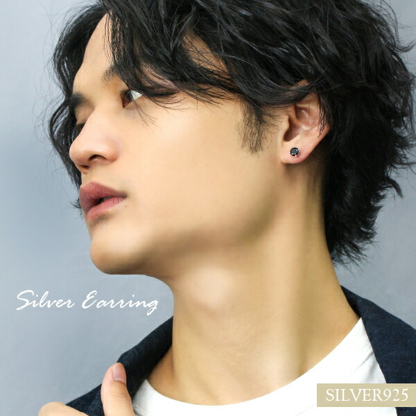 メンズ シルバーピアス シルバー925 キュービックジルコニア 【新宿 銀の蔵】