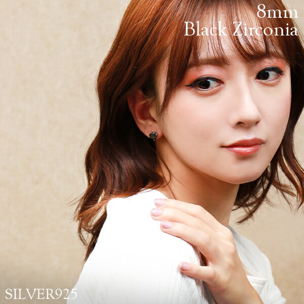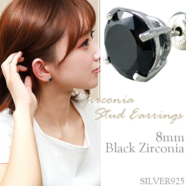 大粒 8mm ブラックジルコニア 一粒 スタッドピアス 1P 片耳用 シルバー925 シンプル ベーシック 定番 一粒ピアス キュービックジルコニア