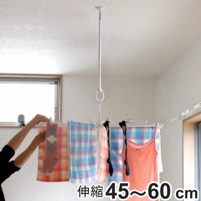 室内物干し 吊下げ型室内物干 長さ45cm〜60cm 伸縮 ドライ・ウェーブ ( DRY・WAVE 物干し 洗濯 伸長 吊り下げ ポール型 ランドリーグッズ 取付簡単 フック付 45〜60 ホワイト 洗濯干し 室内 室内物干し 物干し 室内)