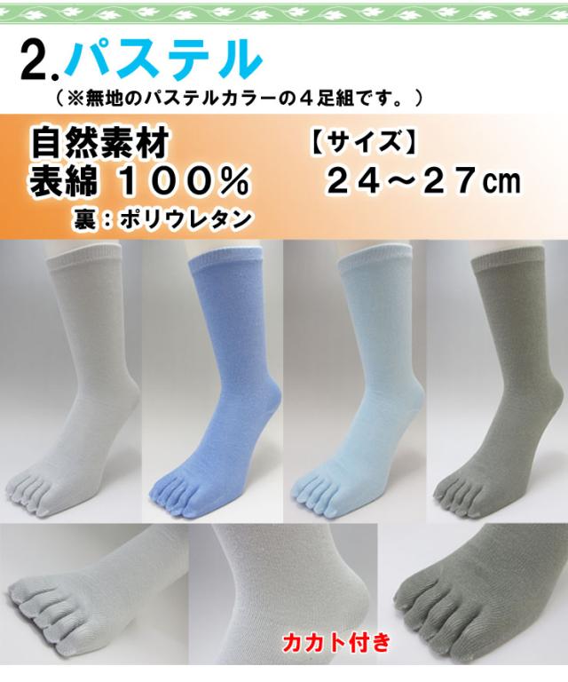 カラー2:自然素材表綿100%(パステルカラーの4足組アソート)