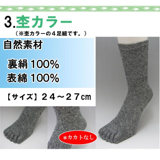 カラー3:自然素材表シルク100%(杢色の4足組アソート)