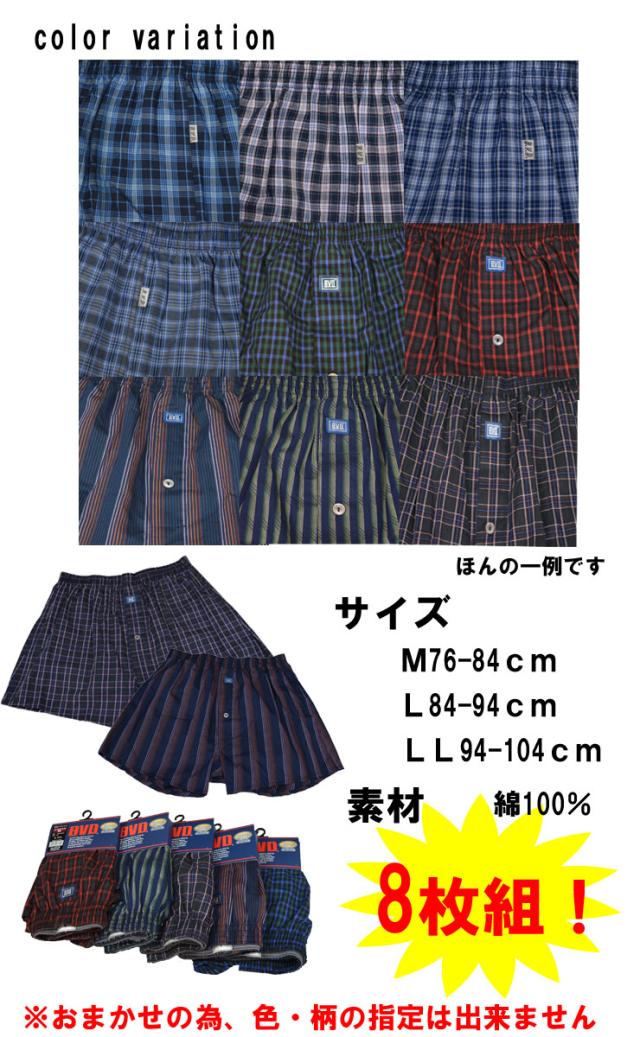 ■特徴:BVD綿トランクス!当店下着売り場男性バイヤーが、8枚おまかせアソートでお選びいたします!