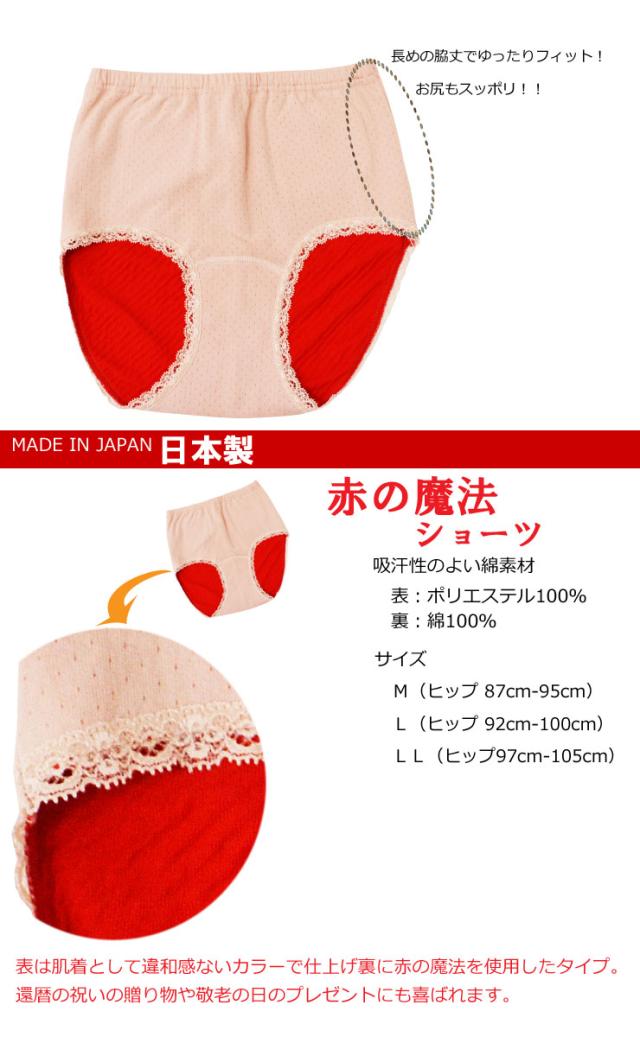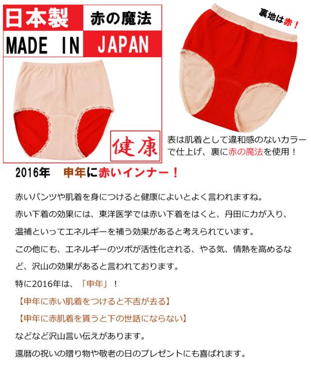 ショーツ 赤 レディース 赤の魔法 単品 裏地 赤 日本製 赤い肌着 赤い下着 還暦 パンツ お祝い (01249)