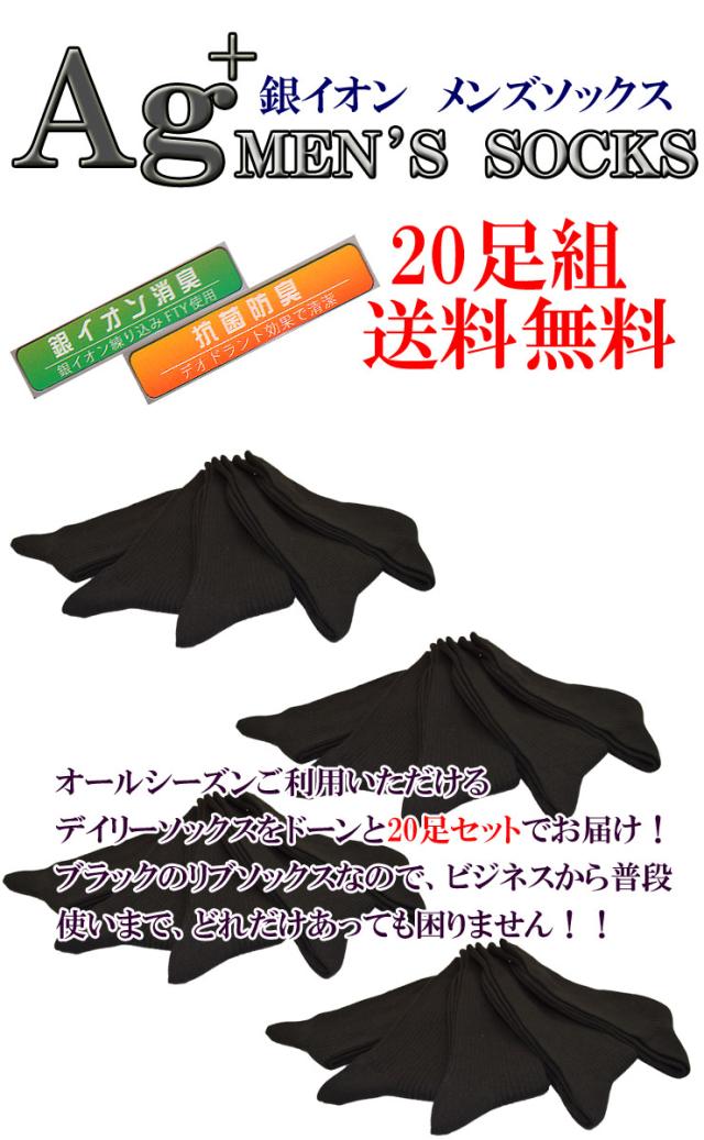 銀イオン消臭機能付きメンズソックス20足組が送料無料!