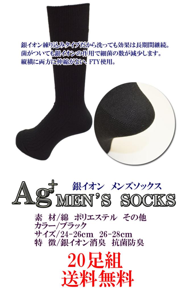 商品名/【送料無料!】銀イオン消臭機能付き 20足組クルー丈メンズソックス