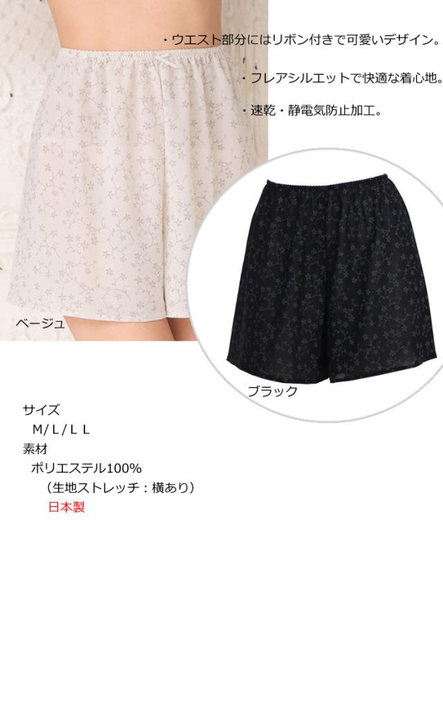 ちょっと贅沢な日本製【4798】花柄フレアパンツ/ペチコート レディースワンピース/ペチコート レディースボトムス/ペチコート パンツ/ペ