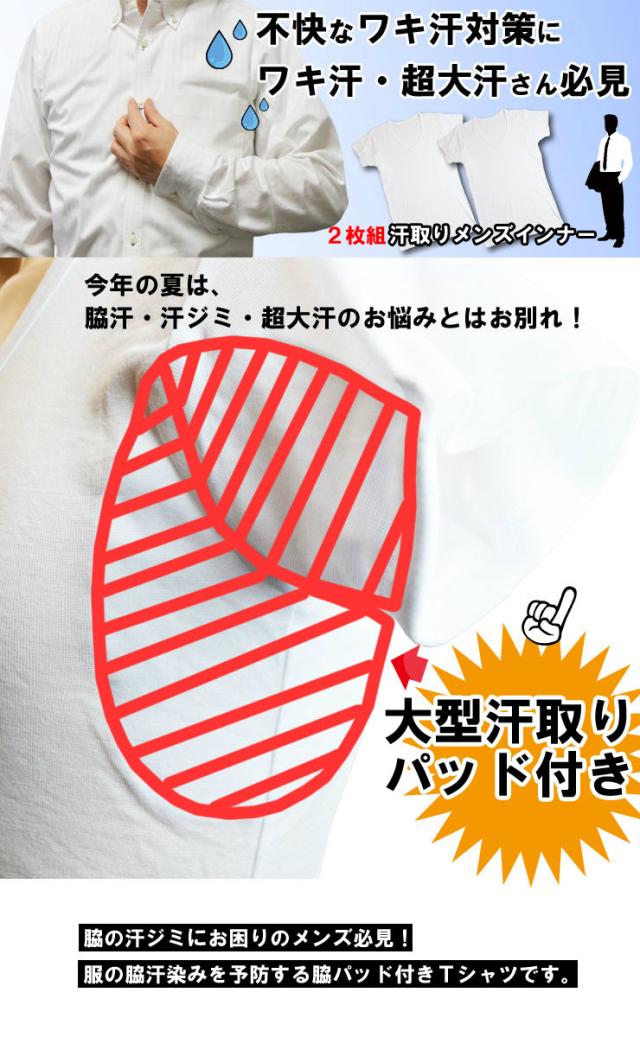 2枚組【メンズ】汗取りパッド付きインナー/脇汗 インナー メンズ/脇汗 パッド 男性/わき汗/ワキ汗 パッド/わき汗 パッド/わきが対策/ワ