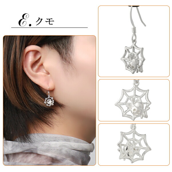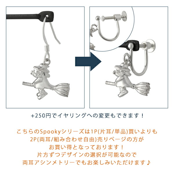 【当店オリジナルデザイン】 スプーキー シルバーピアス (イヤリング変更可) 全5種(1P/片耳用)