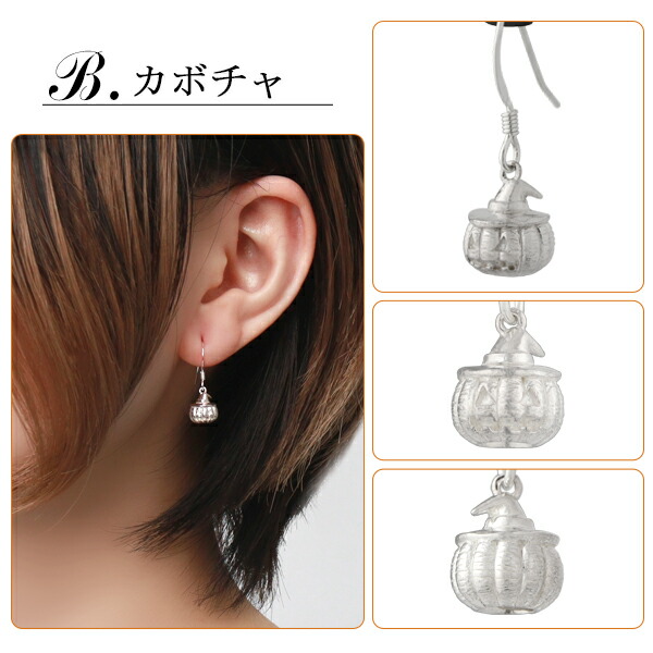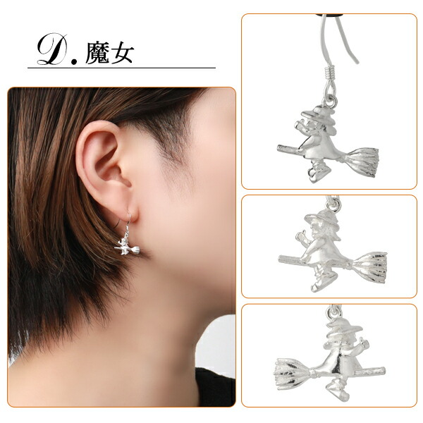 選べる5種類 オバケ かぼちゃ 蜘蛛 コウモリ 魔女 ピアス イヤリング 1P 片耳用 シルバー925 さりげない 小さめ ハロウィン ゴースト ジャック
