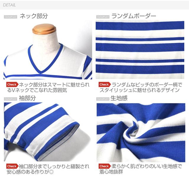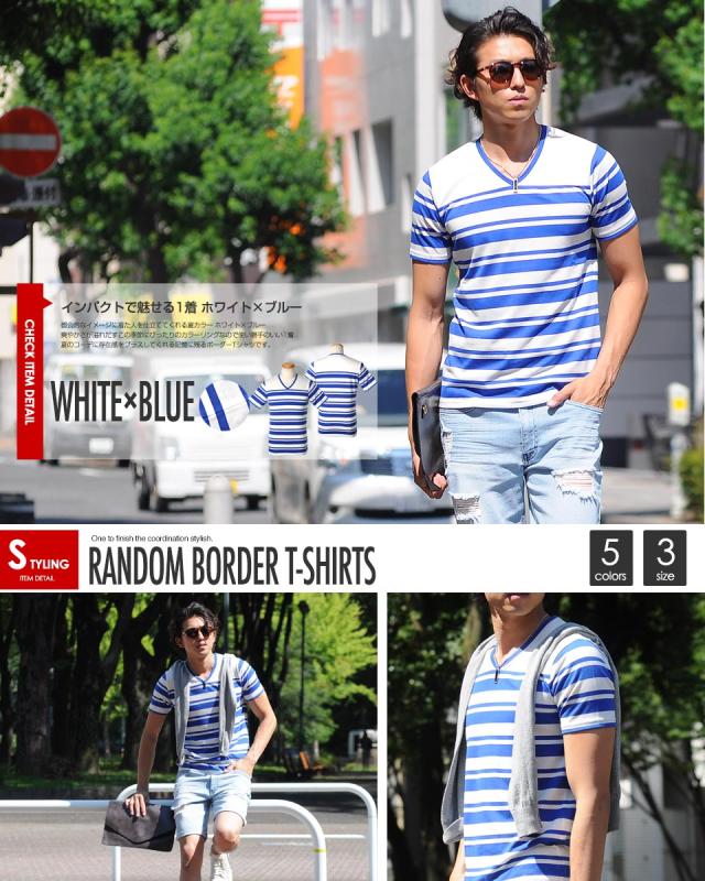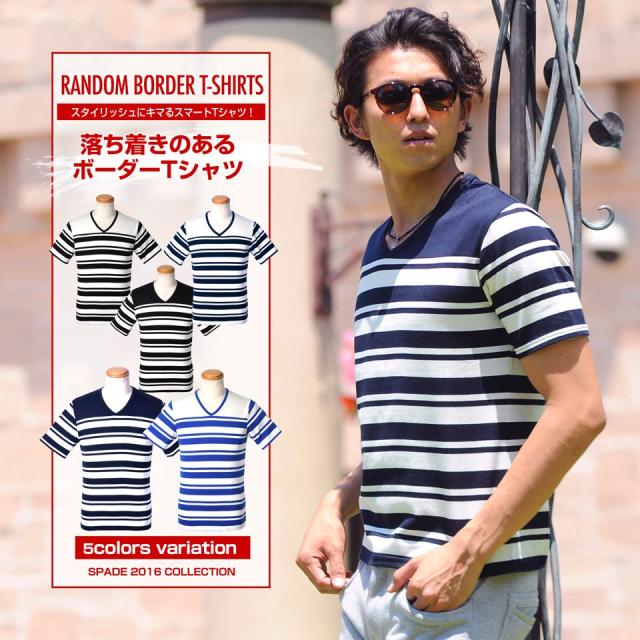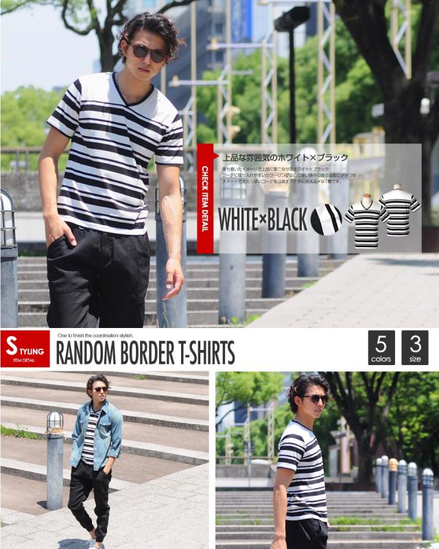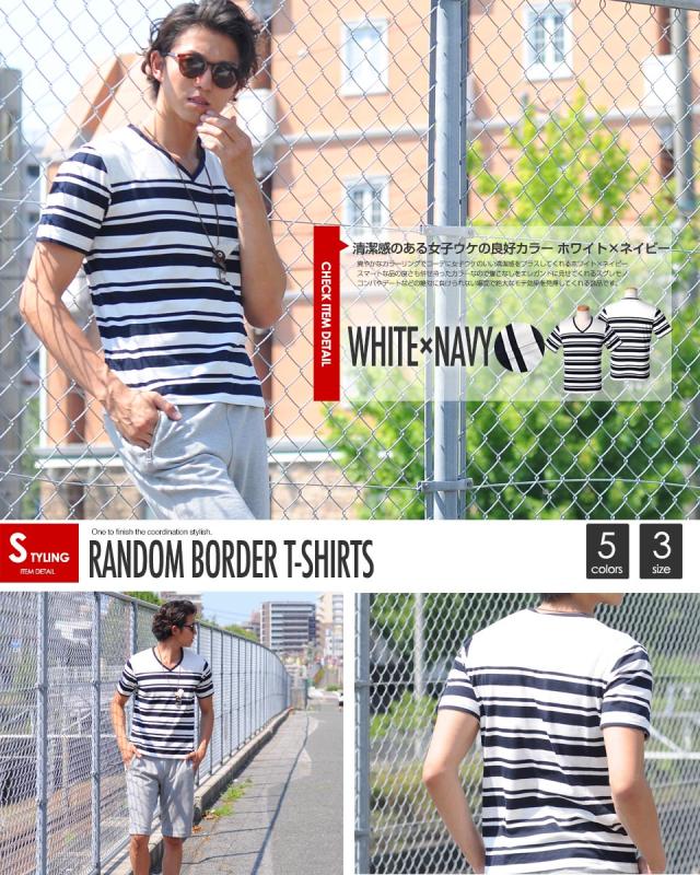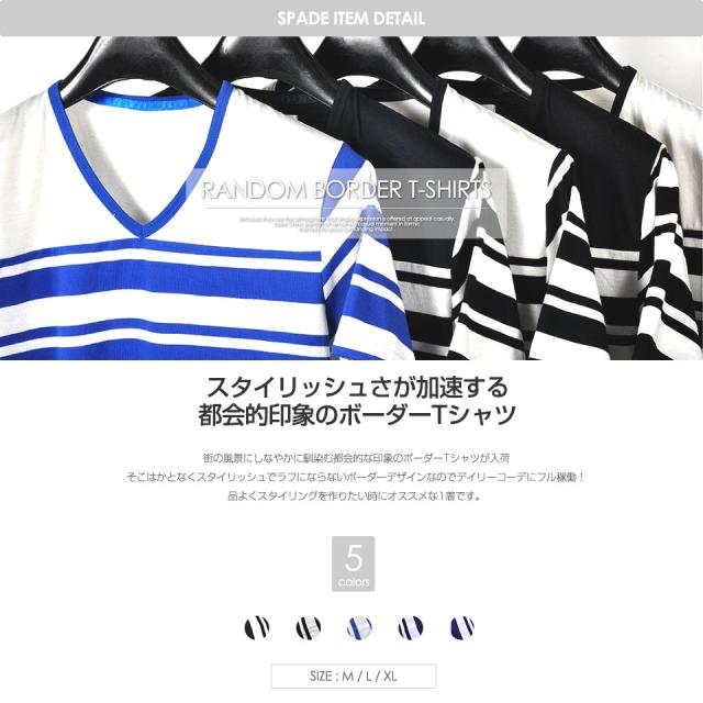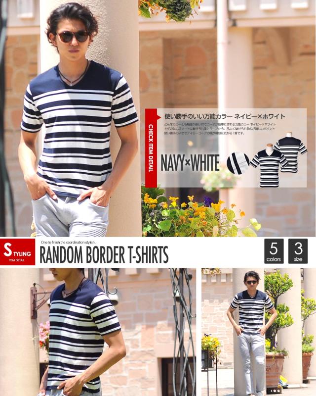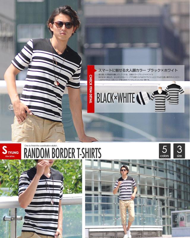 【2点までポスト便で送料無料】/【e189】 / Tシャツ 半袖 メンズ ティーシャツ ボーダー T-SHIRTS ランダムボーダー ストレッチ