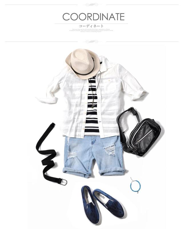お手頃な価格と機能的なデザインでこれからの季節重宝するインディゴ風ランダムボーダーTシャツ。