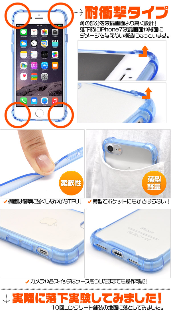 スマホカバー スマホケース アイフォン セブン エイト アイフォンエイト 青 ピンク 金 黒 透明 衝撃吸収 丈夫