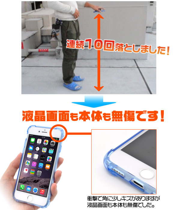 角の部分を液晶画面より高く設計!落下時にスマホ液晶画面や背面にダメージを与えない構造になっています。また、薄型タイプなので従来の耐衝撃ケースよりもコンパクト!ポケットに入れてもかさばりません。