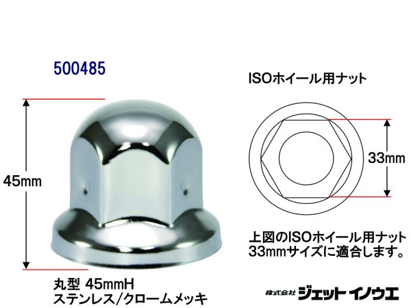 ISOホイール〔大型車/33mm〕専用のステンレスナットカバーです。