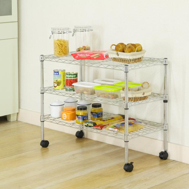 ピッチごとに棚板位置を変更できます。錆びにくいクロムメッキ仕上げ。
