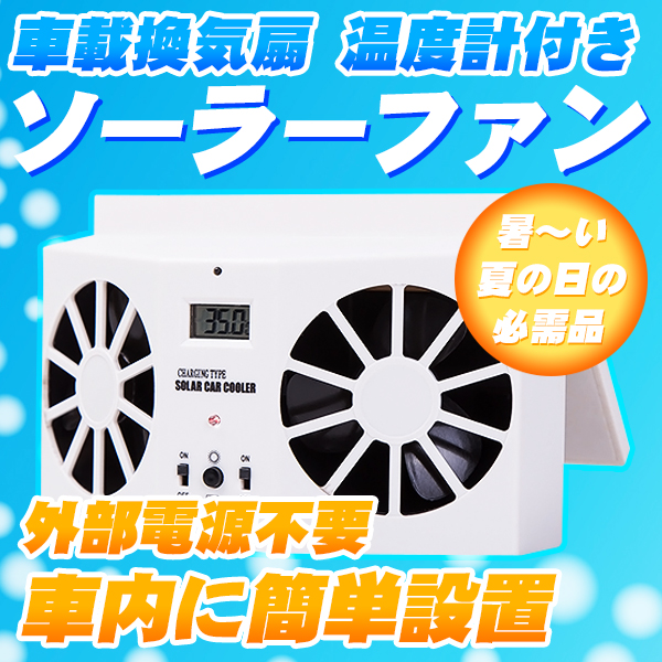 車載 ソーラー パネル ダブル ファン 車内換気 暑い日 熱中対策 太陽光 温度計 デジタル 外部電源不要