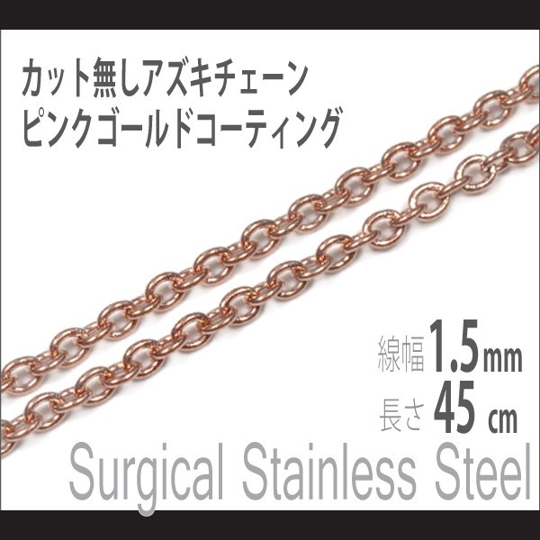 ステンレス ピンクゴールドコーティング カット無しアズキチェーン 1.5mm 幅45cm サージカルステンレス