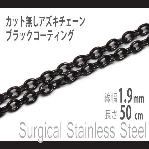 ステンレス ブラックコーティング カット無しアズキチェーン 1.9mm 幅50cm サージカルステンレス