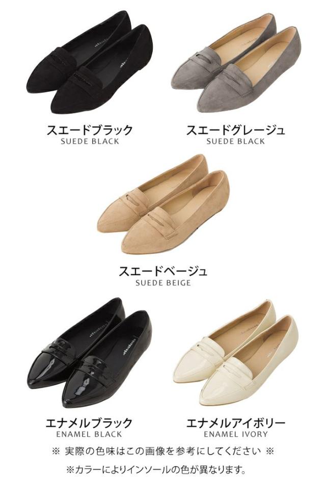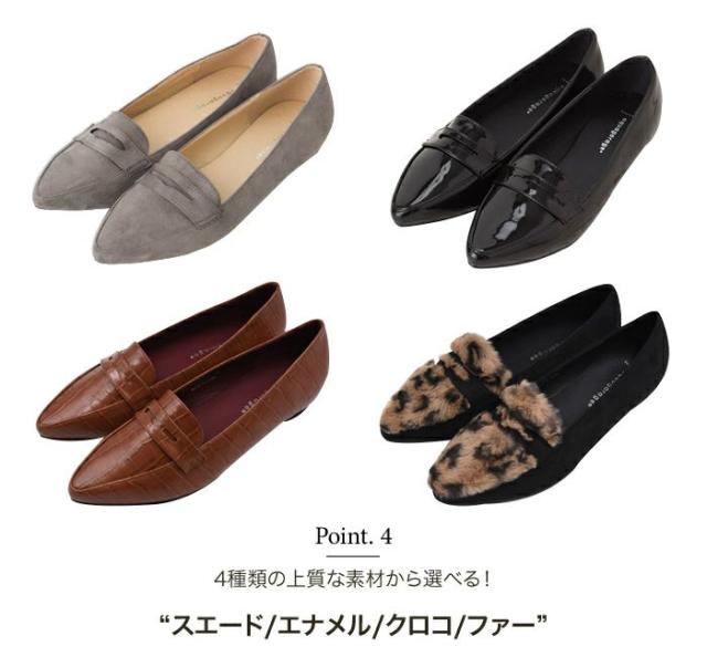 送料無料 ローファー フラットシューズ パンプス ローヒール インヒール ポインテッドトゥ エナメル スエード レディース 靴 秋冬