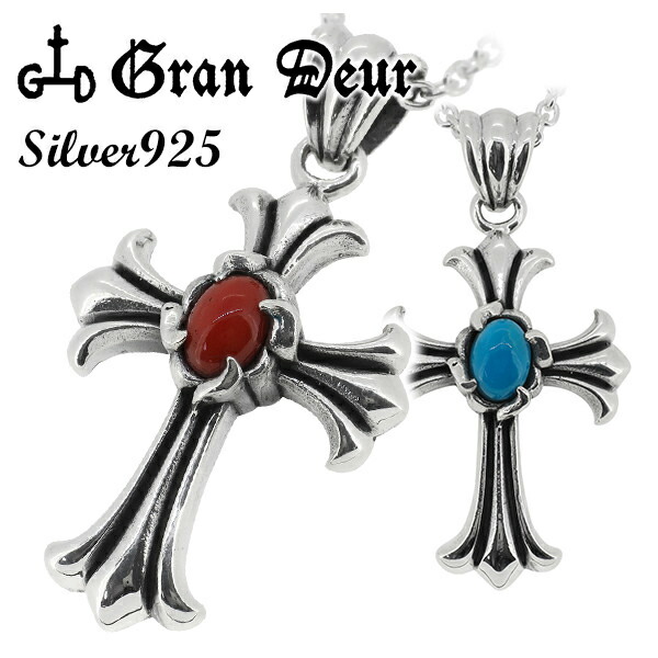 GRAN DEUR リリィクロス 天然石 シルバーペンダント/シルバー925/メンズ ネックレス ブランド