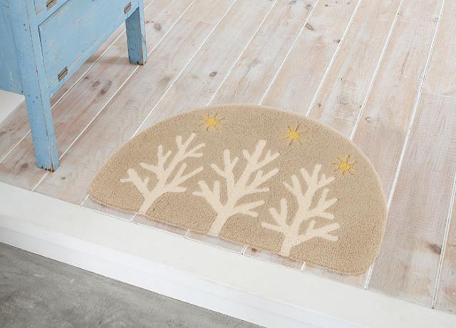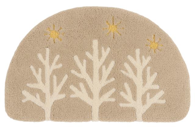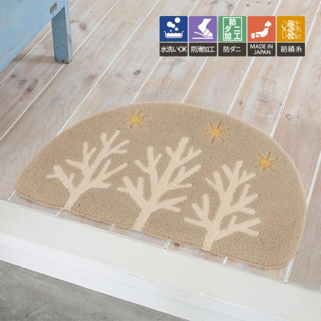 東リ マット 玄関マット 約50×80cm TOM5023 ラグ キッチンマット おしゃれ 手洗いOK 滑りにくい加工 防ダニ 洗える ウォッシャブル 防滑 日本製 デザインマット 半円 ツリー ベージュ かわいい 引っ越し 新生活