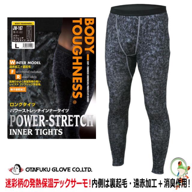 防寒発熱インナー おたふく BTパワーストレッチロングタイツ JW-167(JW-162)【S-3L】ヒートテック レイズドファブリック【下着 メンズ 男性 あったか 冷え性】
