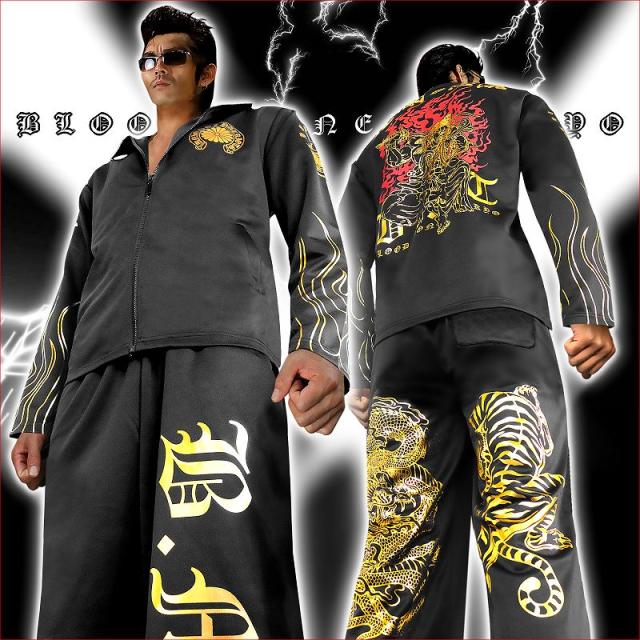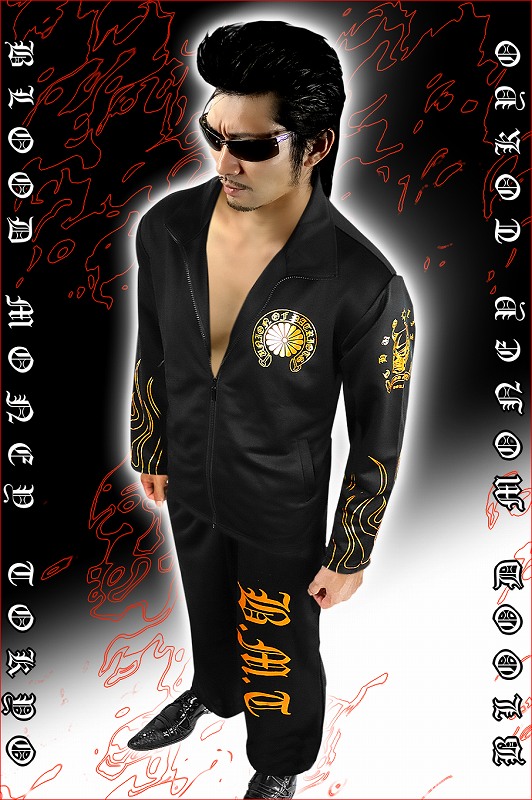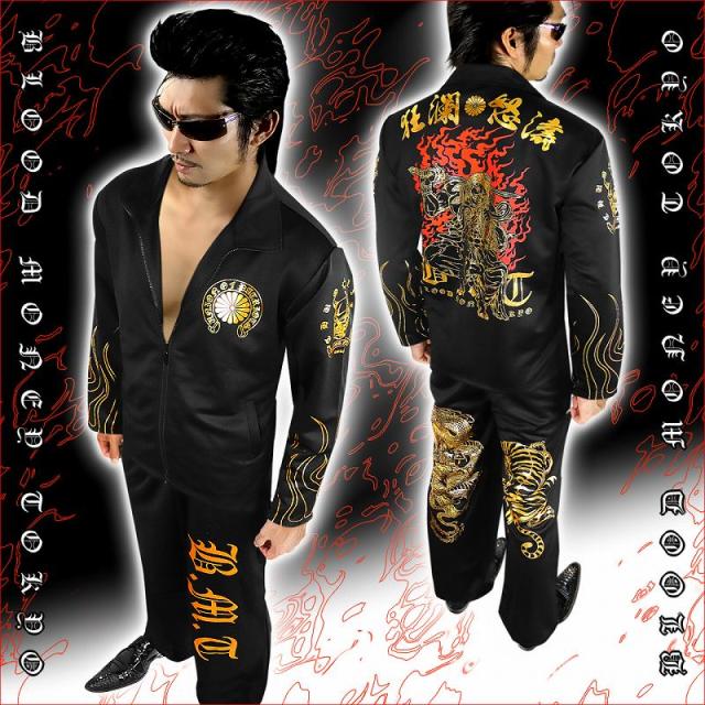 ■カラー:ブラック×ゴールドruffian brawler Criminal Gang Gangsta Outlaw Bad boy Patriot Hooligan Yankee Japanese JPN送料無料/ポイント2倍■mbt-16025bl1■ヤクザ&アウトローブランド BLOOD MONEY TOKYO ブラッドマネートーキョー 長袖 セットアップ ジャージ オラオラ系 悪羅悪羅系 ヤクザ ヤンキー オラオラ 悪羅悪羅 メンズ 上下 黒×金 不動明王 和柄 半グレ ヤカラグ 輩ラグヤンキーチンピラ不良暴走族右翼チャンプロード ドキュメント 雑誌掲載 服