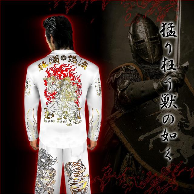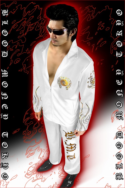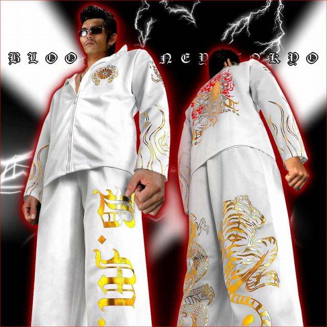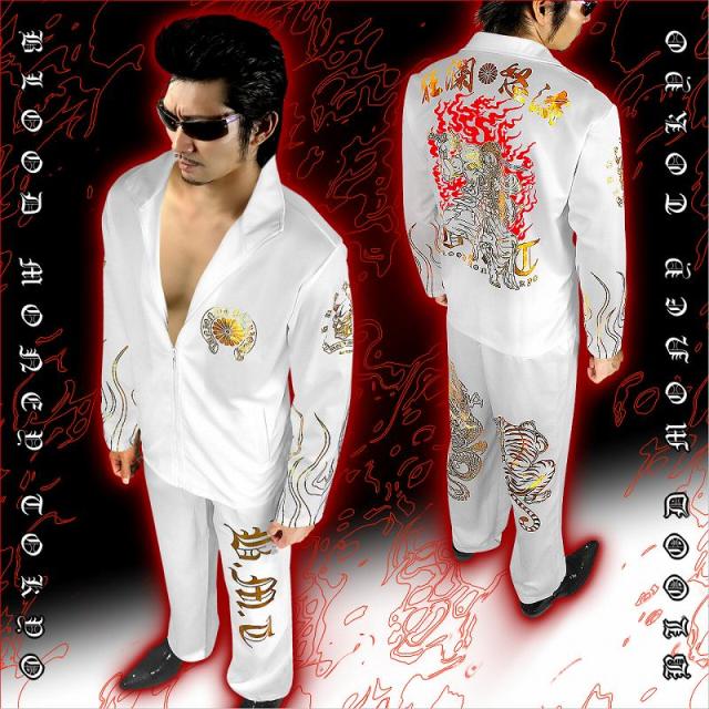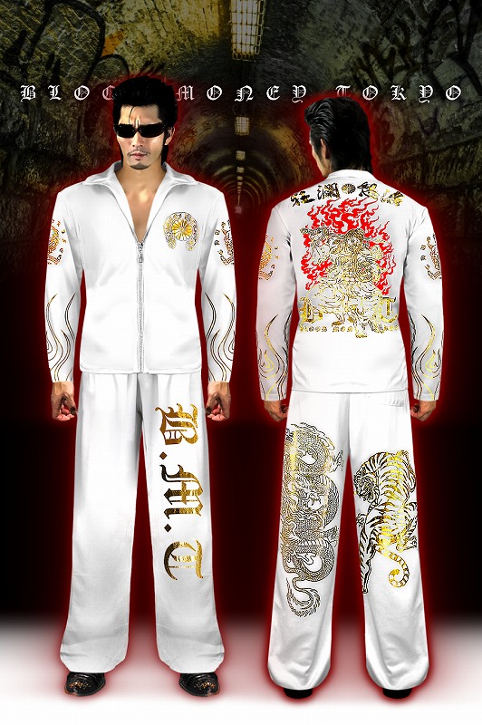 ■カラー:ホワイト×ゴールドruffian brawler Criminal Gang Gangsta Outlaw Bad boy Patriot Hooligan Yankee Japanese JPN送料無料/ポイント2倍■mbt-16025wh■ヤクザ&アウトローブランド BLOOD MONEY TOKYO ブラッドマネートーキョー 長袖 セットアップ ジャージ オラオラ系 悪羅悪羅系 ヤクザ ヤンキー オラオラ 悪羅悪羅 メンズ 上下 白×金 不動明王 和柄 半グレ ヤカラグ 輩ラグヤンキーチンピラ不良暴走族右翼チャンプロード ドキュメント 雑誌掲載 服