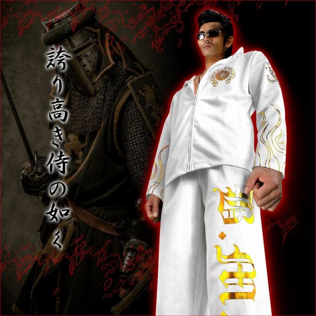 送料無料 ポイント2倍 mbt-16025白×金 長袖セットアップジャージ 和柄 不動明王 ヤンキーチンピラ ヤクザ悪羅悪羅系オラオラ系上下服 悪党の店 バースジャパン BIRTHJAPAN