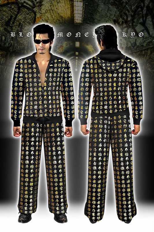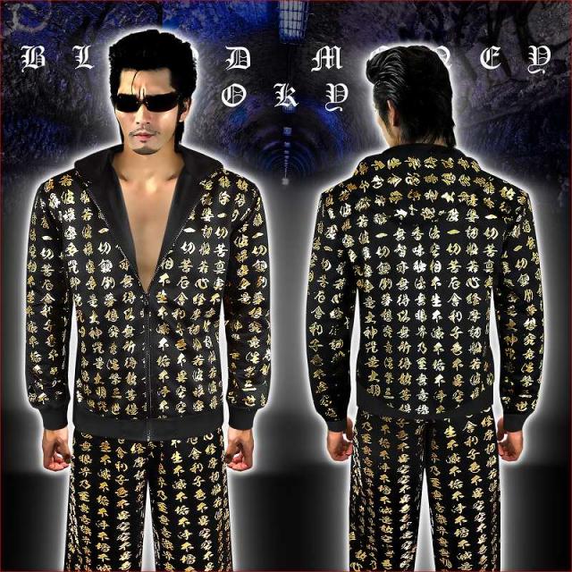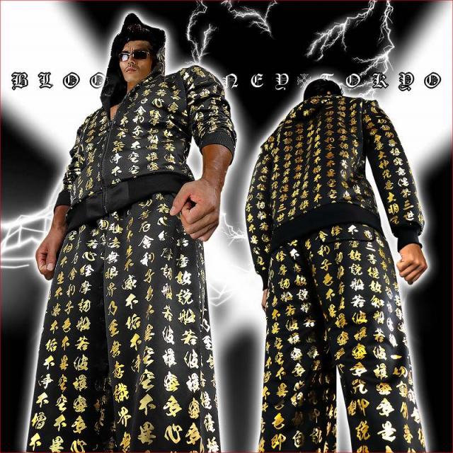 ■カラー:ブラック×ゴールドruffian brawler Criminal Gang Gangsta Outlaw Bad boy Patriot Hooligan Yankee Japanese JPN送料無料/ポイント2倍■mbt-16026bl■ヤクザ&アウトローブランド BLOOD MONEY TOKYO ブラッドマネートーキョー 長袖 セットアップ ジャージ オラオラ系 悪羅悪羅系 ヤクザ ヤンキー オラオラ 悪羅悪羅 メンズ 上下 黒×金 般若心経 総柄 半グレ ヤカラグ 輩ラグヤンキーチンピラ不良暴走族右翼チャンプロード ドキュメント 雑誌掲載 服