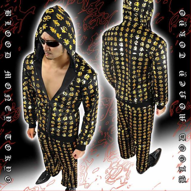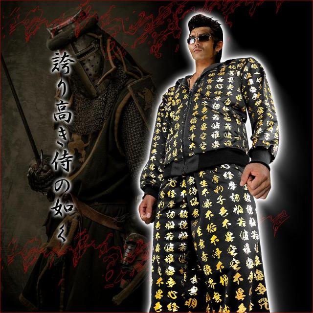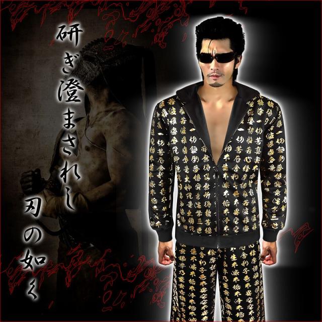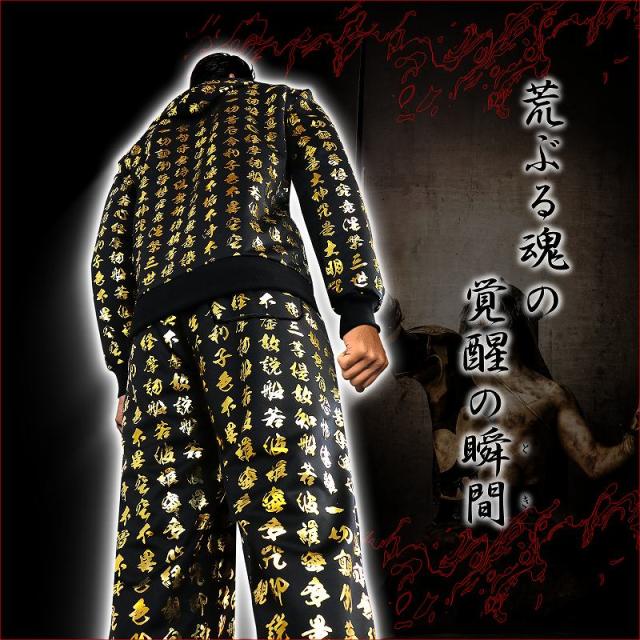 送料無料 ポイント2倍 mbt-16026黒×金 長袖セットアップジャージ 和柄 般若心経 ヤンキーチンピラ ヤクザ悪羅悪羅系オラオラ系上下服 悪党の店 バースジャパン BIRTHJAPAN