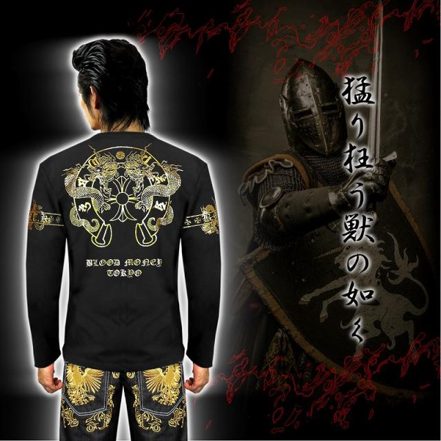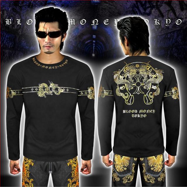 ■カラー:ブラック×ゴールドruffian brawler Criminal Gang Gangsta Outlaw Bad boy Patriot Hooligan Yankee Japanese JPN送料無料/ポイント2倍■mbt-16031b1l■ヤクザ&アウトローブランド BLOOD MONEY TOKYO ブラッドマネートーキョー 長袖 Tシャツ ロンT オラオラ系 悪羅悪羅系 ヤクザ ヤンキー オラオラ 悪羅悪羅 メンズ 黒×金 龍 ドラゴン 和柄 半グレ ヤカラグ 輩ラグヤンキーチンピラ不良暴走族右翼チャンプロード ドキュメント 雑誌掲載 服