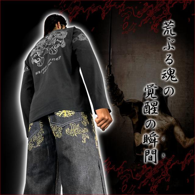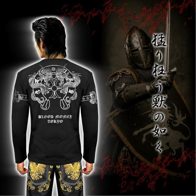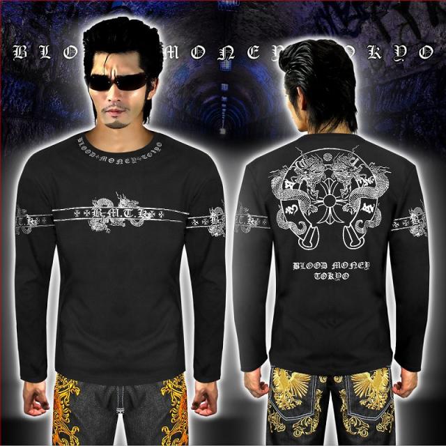 ■カラー:ブラック×シルバーruffian brawler Criminal Gang Gangsta Outlaw Bad boy Patriot Hooligan Yankee Japanese JPN送料無料/ポイント2倍■mbt-16031b2■ヤクザ&アウトローブランド BLOOD MONEY TOKYO ブラッドマネートーキョー 長袖 Tシャツ ロンT オラオラ系 悪羅悪羅系 ヤクザ ヤンキー オラオラ 悪羅悪羅 メンズ 黒×銀 龍 ドラゴン 和柄 半グレ ヤカラグ 輩ラグヤンキーチンピラ不良暴走族右翼チャンプロード ドキュメント 雑誌掲載 服